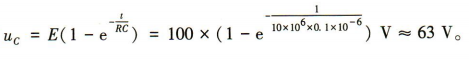 2、用100V的电源经由10MQ的电阻给0.1μF的电容器充电,1s后加在该电容器上的电压约为()