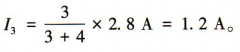 解 析:设通过电阻R3的电流为I3,方向向右,通过电阻R4的电流为I4,方向向右,由KCL有I3+I4=I1+I2=2.8A。由并联电路分流规律有