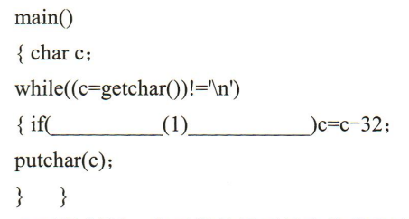 1、下面的程序是从键盘输入一串字符(以回车结束),将其中的小写字母全部转换成大写字母(其它字符 不变)后输出。