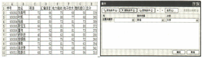 1、对如下图所示的工作表按“总分”成绩进行降序排序,“总分”相等,按“英语”成绩进行降序排序,补充完整操作步骤。