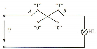 2、由开关组成的逻辑电路如下图所示,设开关A、B分别有如图所示为“0”和“1”两个状态,则电灯HL 亮的逻辑式为( )