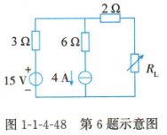 1、如图1-1-4-48所示,电路中负载电阻RL=5Ω,其余各元件参数值已标注。运用两种电源模型等效变换的方法完成下列各题。