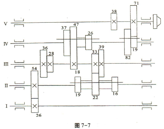 1、如图7-7所示滑移齿轮变速机构,已知轴I的转速为1400r/min。
