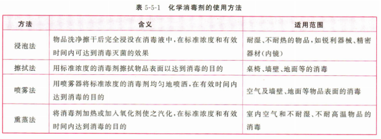 解 析:化学消毒剂的使用方法见表5-5-1。