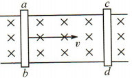 2、如左下图所示,当导体ab 在外力作用下,沿金属导轨在均匀磁场中以速度v 向右移动时,放置在导轨右侧的导体cd 将( )
