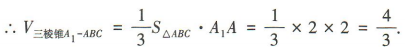解 析:易知A1A为三棱锥A1-ABC的高.由AB⊥AC,A1A=AB=AC=2,得