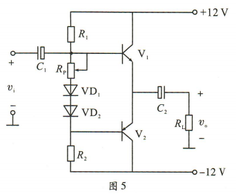 (3)若V1、V2的饱和压降VCES1=VCES2=2V,RL=8Ω,求该电路的最大不失真功率Pom。