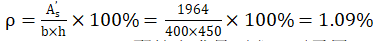 0.55%<ρ<3%,配筋率满足要求,不需用A-As′代替A,且一侧配筋率满足要求。
