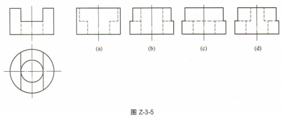 2、如图Z-3-5所示,根据某零件的主视图、俯视图,选择正确的左视图。()