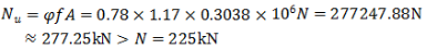 砖柱承受轴心压力设计值为N=1.3×150kN+1.5×20kN=225kN