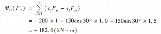 答 案: 2、如图2-21所示,挡土墙所受的力为P=200kN、F=150kN,试求力系的合力对O的矩。 答 案:根据合力矩定理