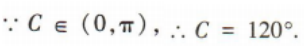 2、在△ABC中,角A,B,C的对边分别是a,b,c,若c2=a2+ab+b2,则C=()