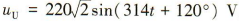 由于初相的范围为(-180°,180°],则U相电源的瞬时值表达式为