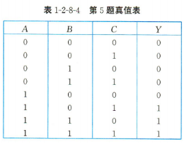 1、根据表1-2-8-4所列真值表。要求:(1)写出逻辑函数式并化简;(2)用与非门实现该逻辑电路。