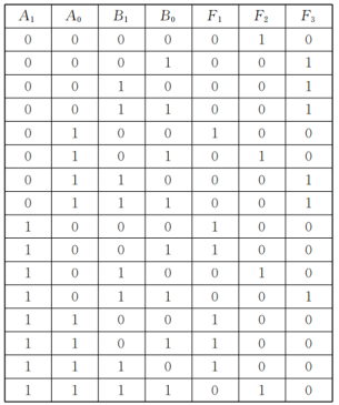 答 案:解:由题意,其输出有F1、F2、F3三个函数,F1表示Ai>Bi、F2表示Ai=Bi,F3表示Ai<Bi,则有如下真值表: