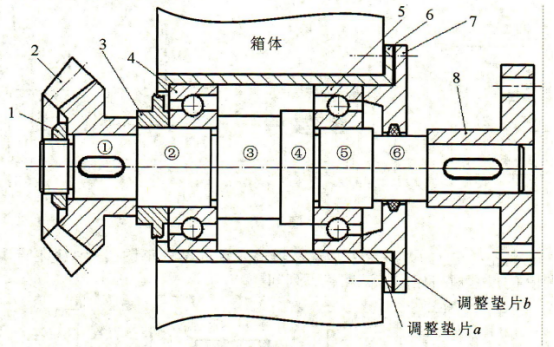 (6)调整垫片()的作用是调整轴承游隙。(填“a”或“b”)