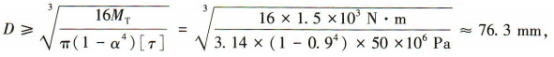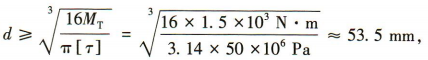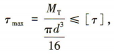2、已知MT=1.5kN·m,[T]=50MPa,试根据强度条件设计实心圆轴与α=0.9的空心圆轴。