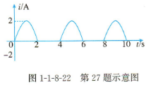 3、如图1-1-8-22所示,正弦交流电流经过整流器处理后只剩下正弦式电流波形曲线的正半周,则图示交流电的有效值是()。