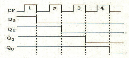 2、已知电路图(10)如下,各触发器初态为Q0Q1Q2Q3=0001,已知CP脉冲如图,试列出各触发器Q端的状态表,并画出波形图。