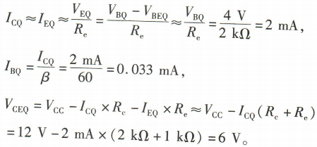 (2)C1、C2是输入和输出耦合电容,起“隔直通交”的作用。输入耦合电容C1是避免输入信号中的直流成分对放大电路本身静态工作点的影响,输出耦合电容C2是避免放大信号中的直流成分对负载的影响。Ce是发射极旁路电容,其作用是提供交流信号的通道,减少信号的损耗,使放大器的交流信号放大能力不因 Re而降低。
