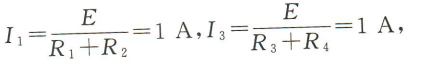 Uab=R2I1-R4I3=5 V-4 V=1 V=E0,