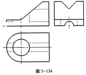 1、根据如图5-134所示视图,补画三视图中所缺的图线。