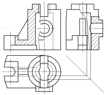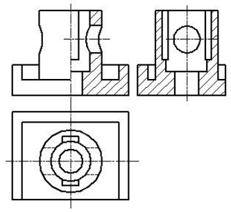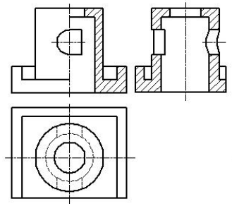 1、如图6-43~6-46所示,补全剖视图中的缺线。