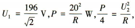 2、有一理想变压器输入的正弦交流电压的最大值是196V,一负载接在直流20V的电压上时消耗的功率为P。现将该负载接在此变压器次级绕组上,消耗的功率为