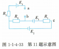 2、如图1-1-4-33所示,有源二端网络内部三个直流电源的电动势分别是E1=12V,E2=E3=6V,不计内阻,三个定值电阻器的阻值分别是R1=R2=R3=3Ω。将该有源二端网络等效成一个电压源,则等效电源的电动势Uab和等效内阻Rab分别是()。