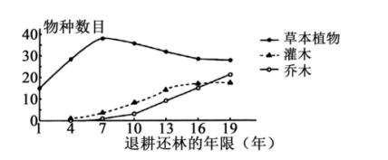 1、退耕还林是践行“绿水青山就是金山银山”的发展理念的重要措施之一、如图表示科研人员对某地不同退耕年限植物群落的物种数目变化的调查结果,下列说法正确的是( )
