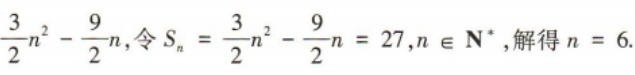 2、在等差数列{an}中,a1=-3,公差d=3.若此数列前n项的和Sn=27,则n=()