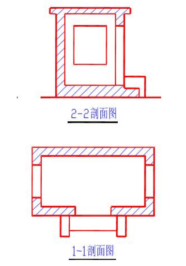 3、作如图2-6-28所示房子的1—1、2—2剖面图。