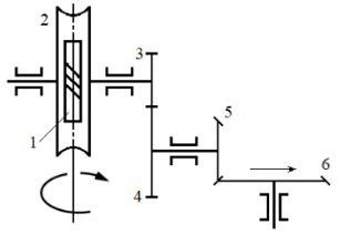 2、如图10所示定轴轮系,已知蜗杆1的头数为1,转速n1=960 r/min,蜗轮2的齿数Z2=24,其他齿轮的齿数分别为Z3=20,Z4=60,Z5=30,Z6=40。试求齿轮6的转速n6,并在图中标出其方向。