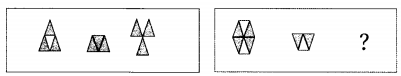 解 析:第一组图,从第一个图形到第二个图形是将第一排的三角形下翻到了第二排,第二组图亦是如此;再看第一组的第一个图形和第三个图形,第一排的三角形和第二排的三角形互换,第二组也是;则让第二组的第一个图形上下两排三角形互换,交换之后,C项正确。故选C。
