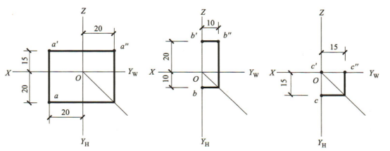 2、已知点下列点坐标,画出它们的三面投影。