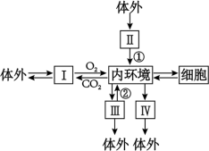 解 析:A、人体内环境稳态的调节机制是神经-体液-免疫调节网络, A错误;B、Ⅱ内的葡萄糖通过①进入血浆的跨膜运输方式是主动运输,B错误;C、②表示肾小管与集合管对原尿的重吸收作用,I 是呼吸系统,C正确;D、内环境与I进行气体交换必须通过肺泡壁和毛细血管壁,D错误。故选C。