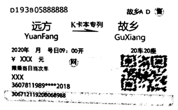 1、如图是一张火车票,上面有时间、目的地、身份证号码等数据,则下列说法错误的是( )