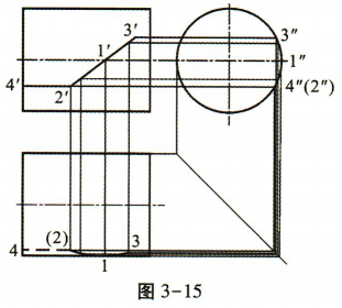 解 析:已知线段在主视图中的投影为两直线,根据表面交线性质可判断24段为直线段,只需求两端点,优先作。213段为曲线,先作三个特殊点,1在最前素线上,2、3为极限位置点,特殊点的三面投影找全后,再补画适当一般位置点。在连接线段时,要根据转向线结合特殊点的可见性,即投射方向判断线段虚实。