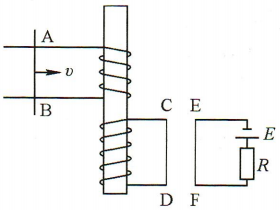 3、如图所示,导体AB沿水平导轨向右做匀加速运动时,导体AB中产生的感生电流方向为(),导线CD中通过的感生电流方向为(),CD导线在EF直导线所产生的磁场中所受的作用力的方向是()。