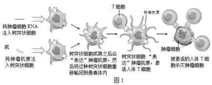 (1)根据图1分析,树突状细胞将肿瘤特异性抗原信息呈递给____________后,并激活其_____________的过程,产生的_________________会最终将肿瘤细胞裂解。该过程属于____________(填“特异性”、或“非特异性”)免疫,体现免疫系统的_______________功能。