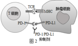 (2)为了使患者体内的树突状细胞能够“表达”肿瘤抗原,研究者的具体做法是:将__________________________________注入从患者体内取出的树突状细胞内,再将成熟表达抗原的树突状细胞_____________________,实现利用人体自身的免疫系统成员树突状细胞治疗癌症的作用。(3)根据图2分析,T细胞活化后到达癌组织区域,会借助细胞表面_______________分子识别肿瘤细胞的MHC分子,T细胞表面的程序性死亡受体PD-1分子一旦被PD-L1激活,将启动自身的凋亡程序,这一识别作用将使肿瘤细胞__________________。依据这一发现,科研人员研制了两种特异性极强的靶向药物,尝试分析两种药物的抗肿瘤机理可能是____________________________________。