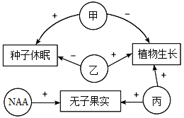2、植物激素甲、乙、丙和生长素类似物NAA的作用模式如图所示,图中“+”表示促进作用,“﹣”表示抑制作用。下列叙述不正确的是( )