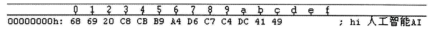 2、使用UltraEdit软件观察字符“hi人工智能AI”的内码部分界面如图所示。下列说法正确的是()