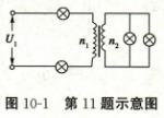 (2)如图1-1-10-22(b)所示,单相交流电源先通过原、副边绕组匝数比为1:10的升压变压器将输出电压升高后,经过同样的输电线路送电后,再通过原、副边绕组匝数比为10:1的降压变压器后降压后送到用户,求用户从电源处得到的电压和功率。