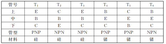 答 案:晶体管三个极分别为上、中、下管脚,答案如下表所示 :