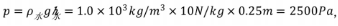 可得,水对塑料片产生的压力:F水=pS=2500Pa×10×10-4m2=2.5N;