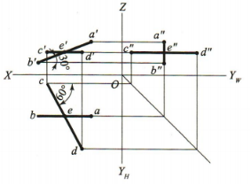 1、E(30,18,12)为直线AB、CD的交点且为AB、CD的中点,AB为正平线,α=30°,长为20mm,CD为水平线,β=60°,长为30mm,作AB、CD投影图。