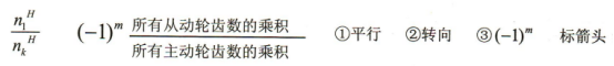 =()=()。使用该式应注意: ①齿轮1、齿轮k和行星架H的回转轴线必须(),否则不能应用。 ②转速n1、nH、nk代入数值时应根据()确定“±”号。 ③若齿轮1到k之间含轴线不平行的齿轮,则不能用()表示转向关系,只能通过()来确定“±”号。