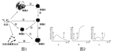 (3)据图1所示,细胞D是由______增殖分化形成的。免疫学研究证明,如果细胞D产生了针对核蛋白的化学物质,会引起系统性红斑狼疮,该疾病在免疫学中属于_____。接触性皮炎通常是由有毒的常春藤、橡胶和油漆引起的,这在免疫中属于______反应。