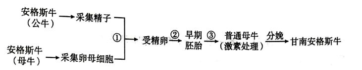 1、安格斯牛肉质好、出肉率高且生长适应性强,是畜牧业中公认的优质肉牛。目前我国已利用胚胎工程技术获得了“甘南安格斯牛”,改变了甘南州原有畜牧业状态。“甘南安格斯牛”的培育流程如图所示。下列叙述错误的是()